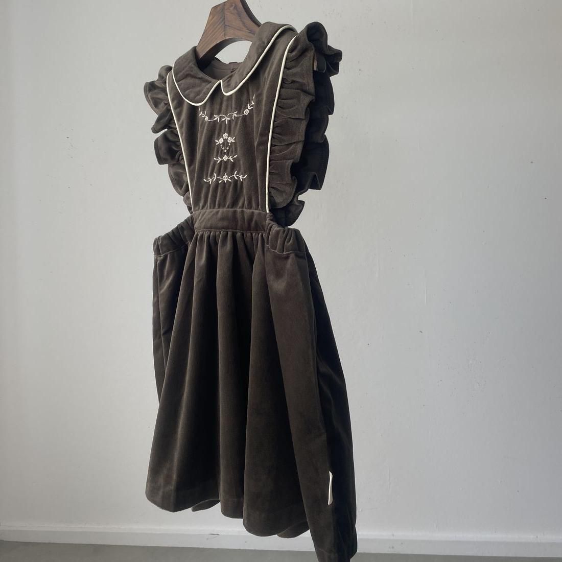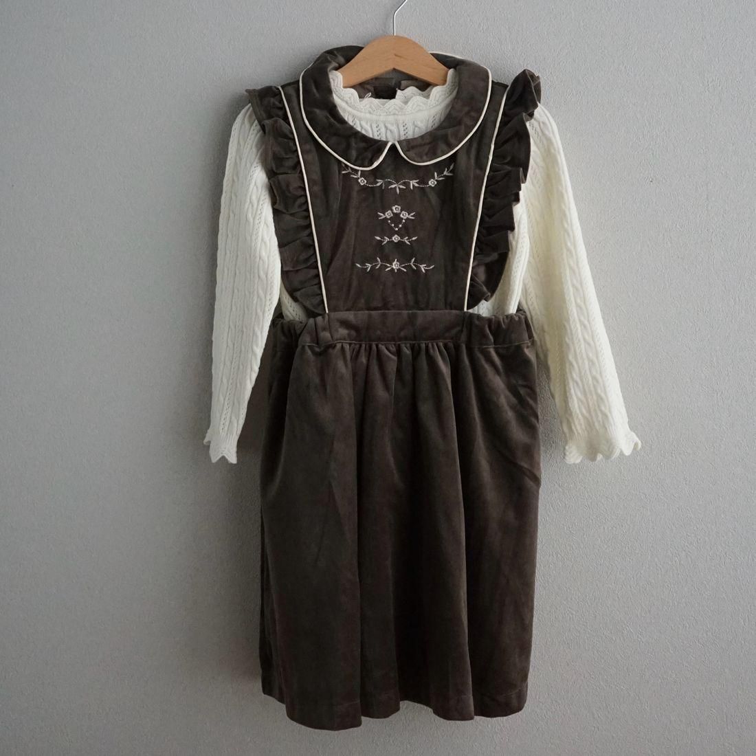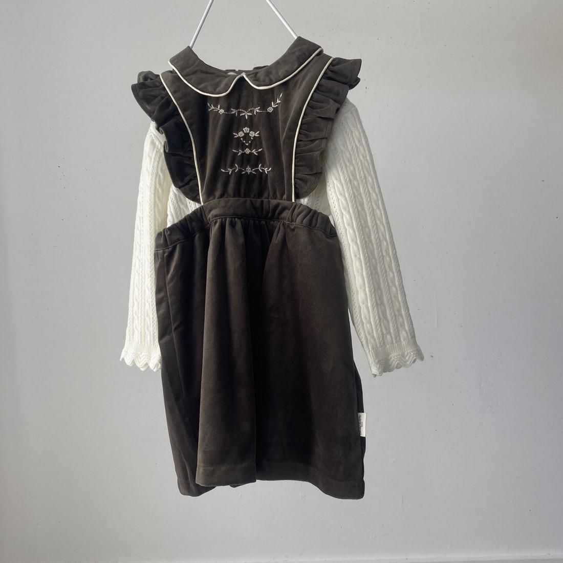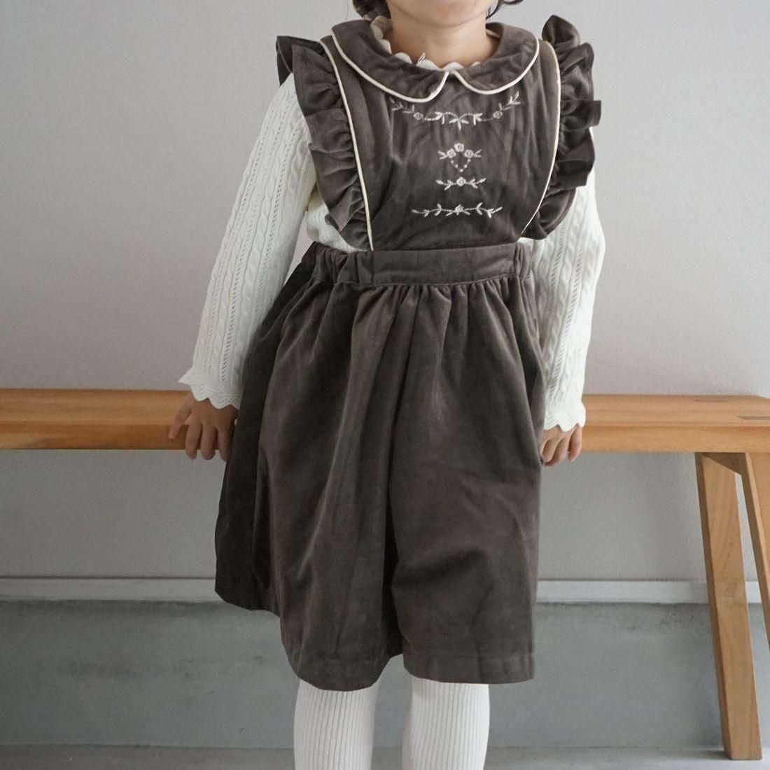 1枚あると着まわせるエプロンデザインのジャンパースカートです
