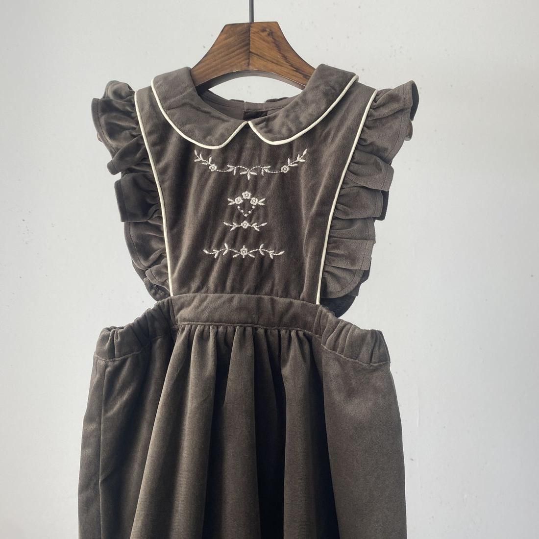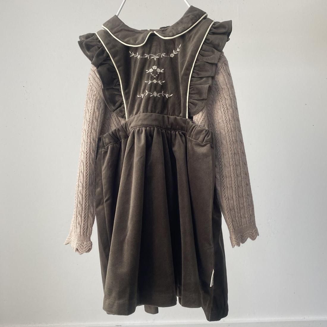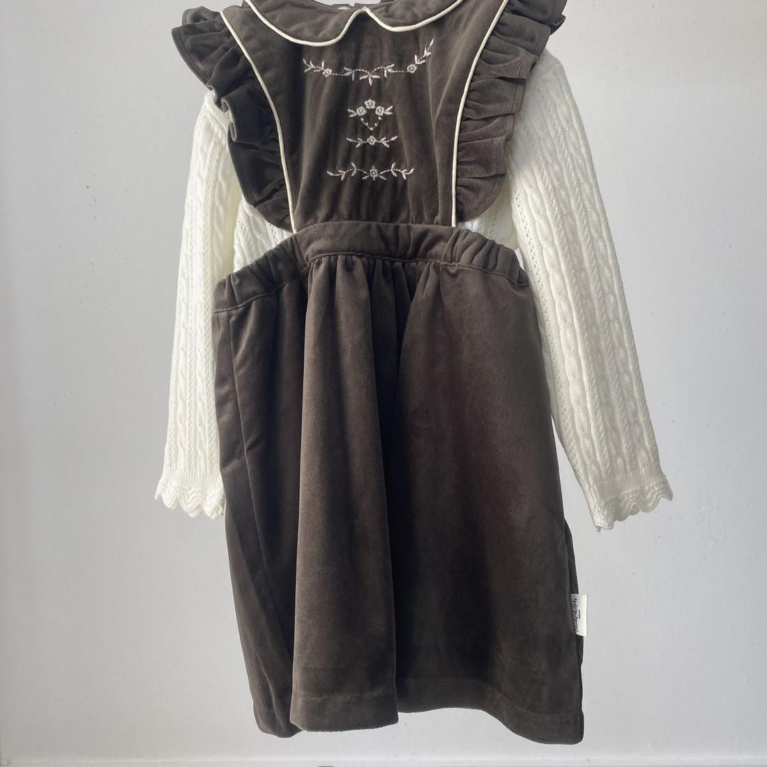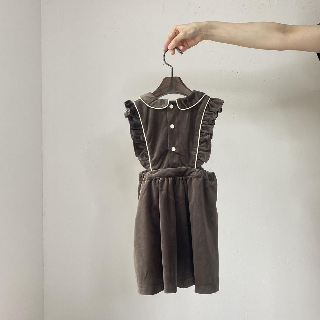 1枚あると着まわせるエプロンデザインのジャンパースカートです